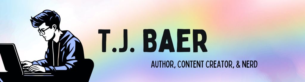 T.J. Baer is a queer, trans author of adult and young adult LGBTQ+ fiction. Born in Western Pennsylvania, he currently resides in his adopted hometown of Chicago with his cat and a well-stocked cupboard of tea. Some of his titles include Following Grandpa Jess, Guardians, Dreamers, The Boy Who Was Kissed, and Remember Me, and his short fiction has been featured in the Harpur Palate Literary Journal and Flash Fiction Magazine. When not writing, he can be found either discussing queer media on his YouTube channel or failing to escape from murderous ghosts on Twitch.